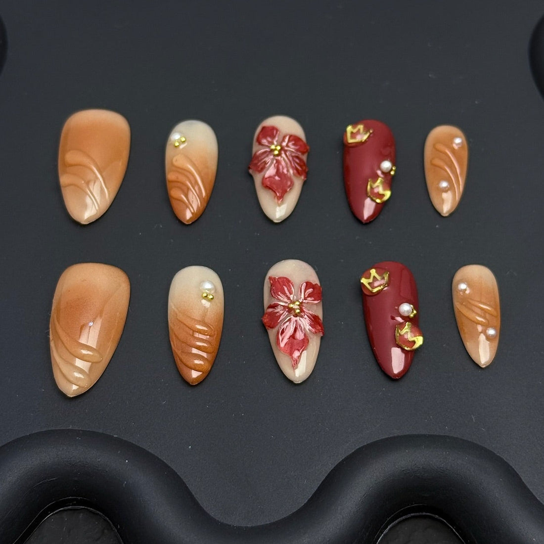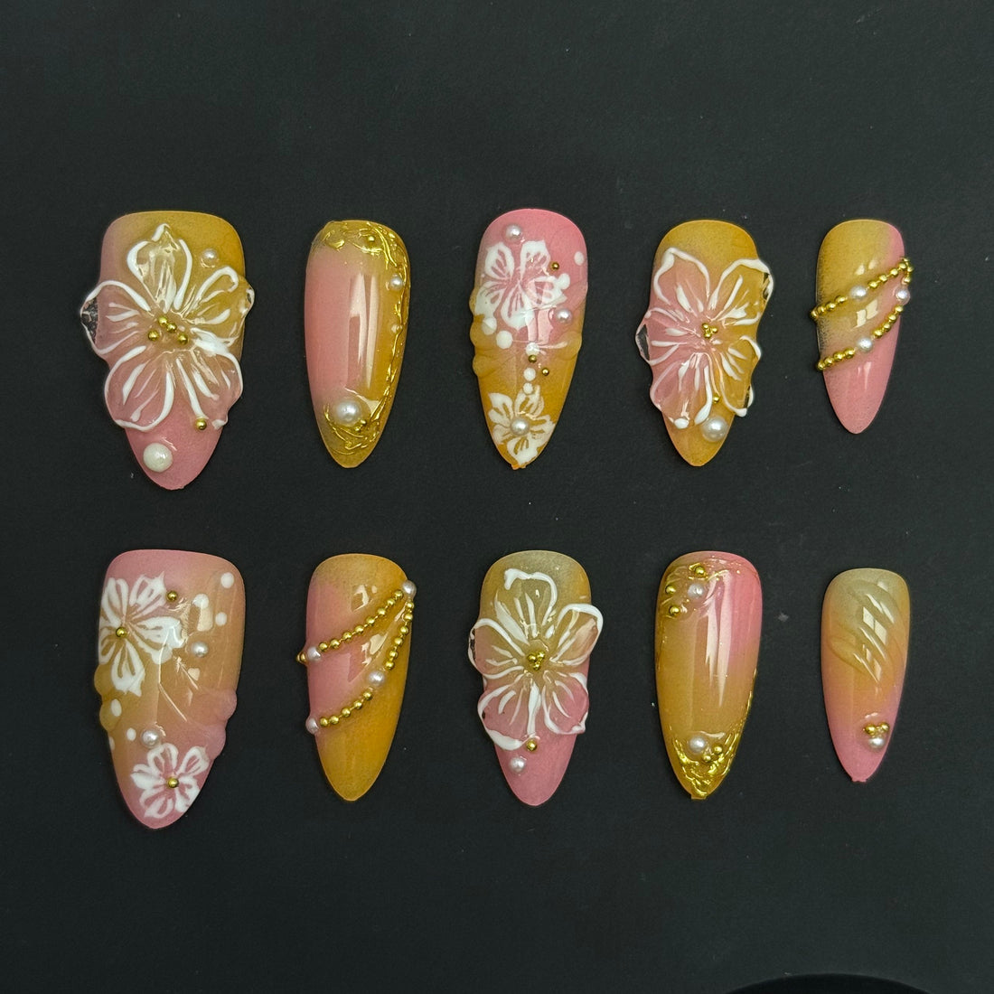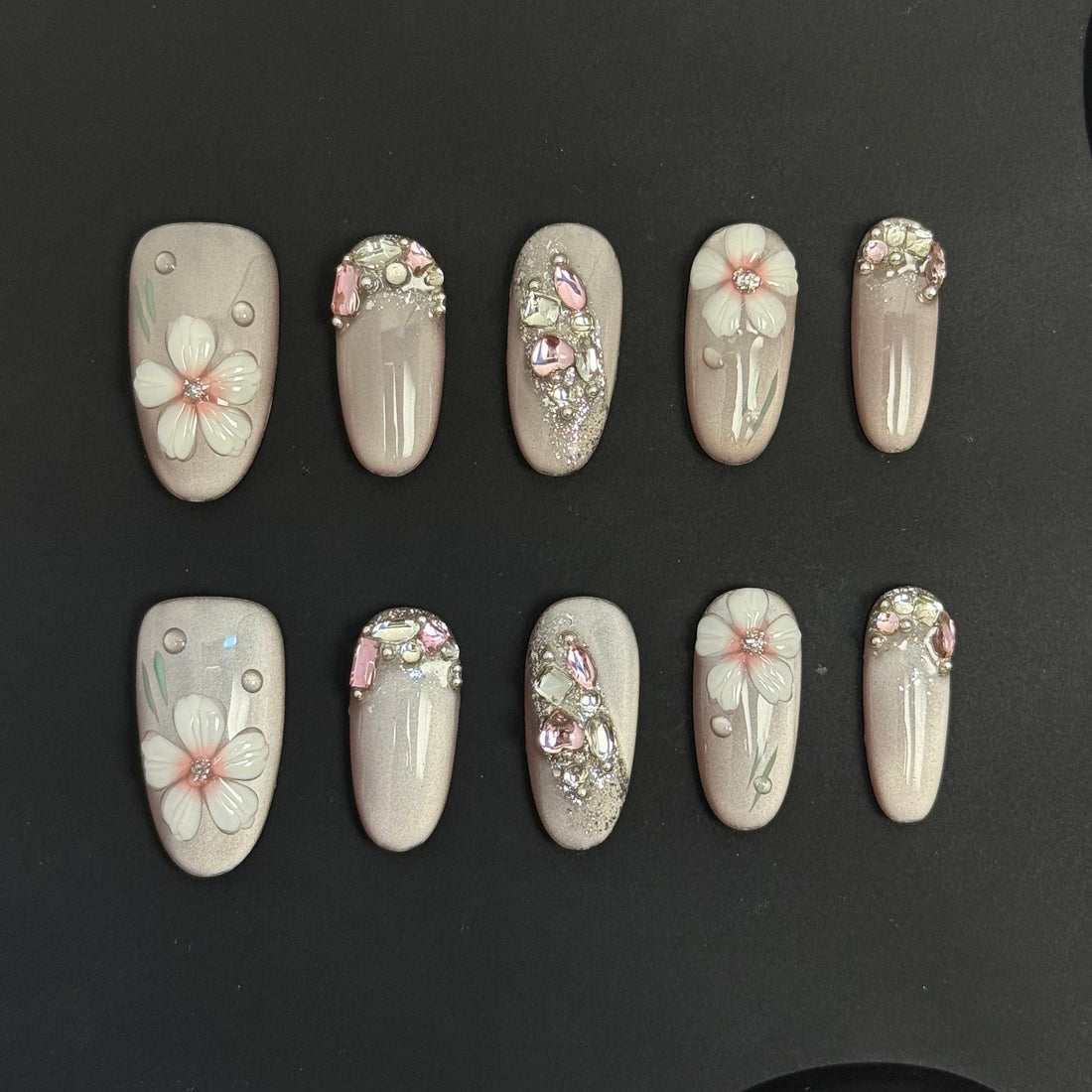 Elevate your style with our 3D floral press-on nails, featuring intricate dimensional designs that add a touch of artistic elegance to your fingertips.