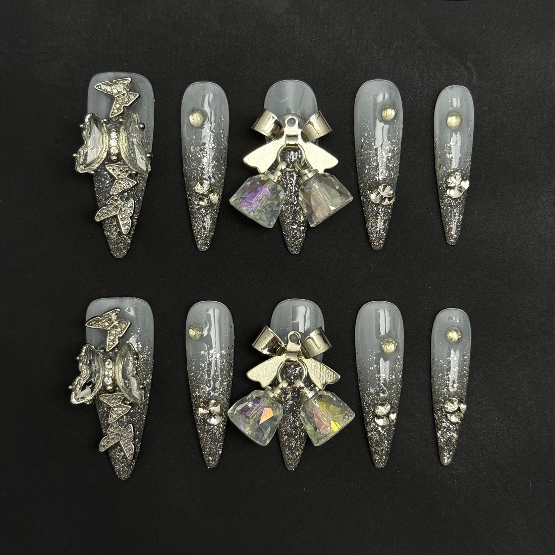 Glittering Crystal Bow Nails