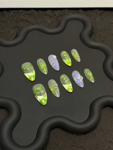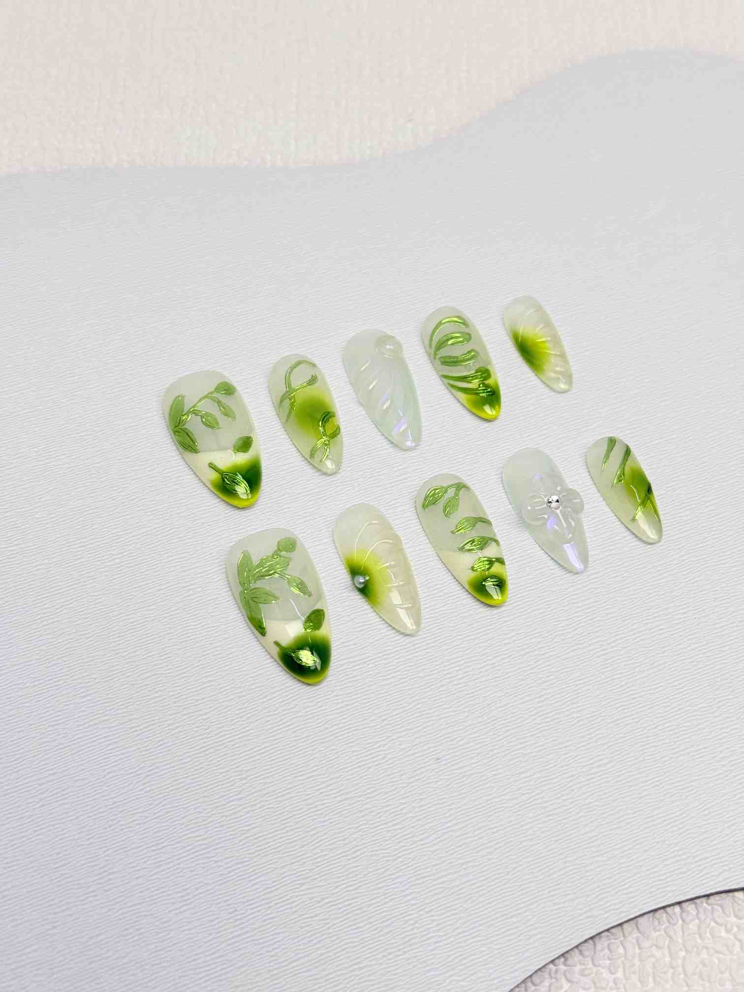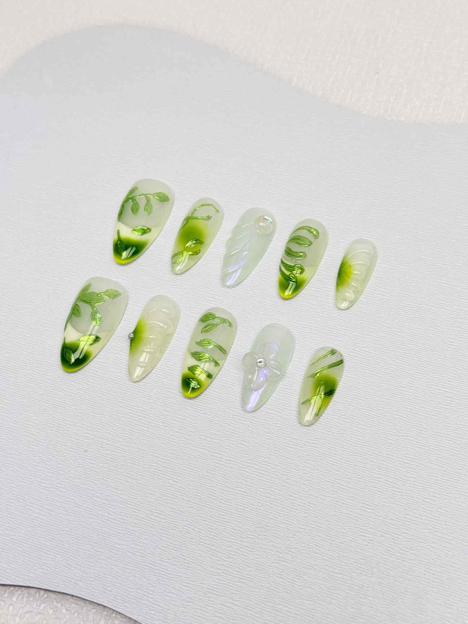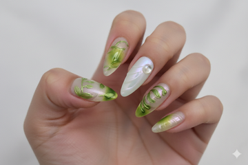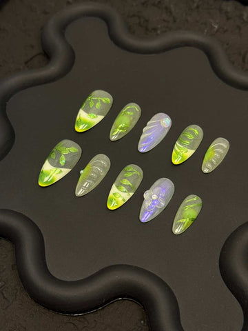 Jade Leaf Veil Nails