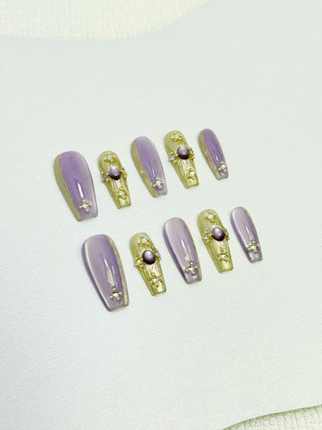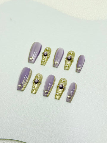 Lilac Stone Veil Nails